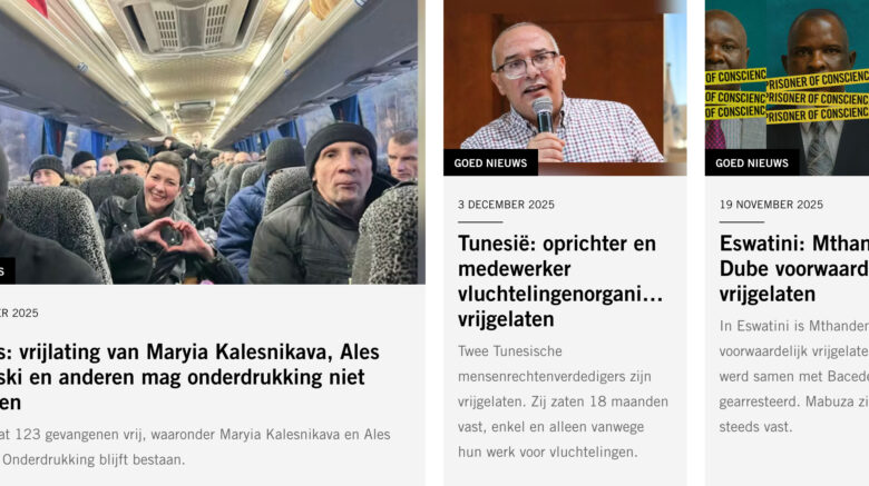 Belarus Op 13 december hebben de Belarussische autoriteiten 123 gevangenen vrijgelaten, onder wie Nobelprijswinnaar (voor de Vrede) Ales Bialiatski en Maryia Kalesnikava, een gewetensgevangene voor wie Amnesty International tijdens Write for Rights 2024 actie voerde. Amnesty vermeldt daarbij dat de vrijlating van Maryia Kalesnikava, Ales Bialiatski en anderen de onderdrukking niet mag verhullen. Tunesië Op 3 december jl. werd bekend …